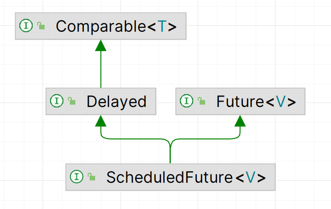 ScheduledFuture 是一个接口,继承了 java.util.concurrent.Delayed、java.util.concurren.Future<V>