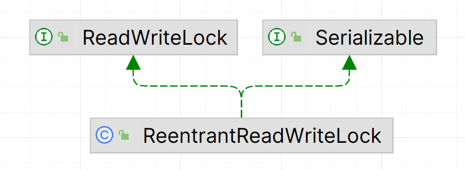 ReentrantReadWriteLock 是一个具体类,实现了 java.util.concurrent.locks.ReadWriteLock、java.io.Serializable
