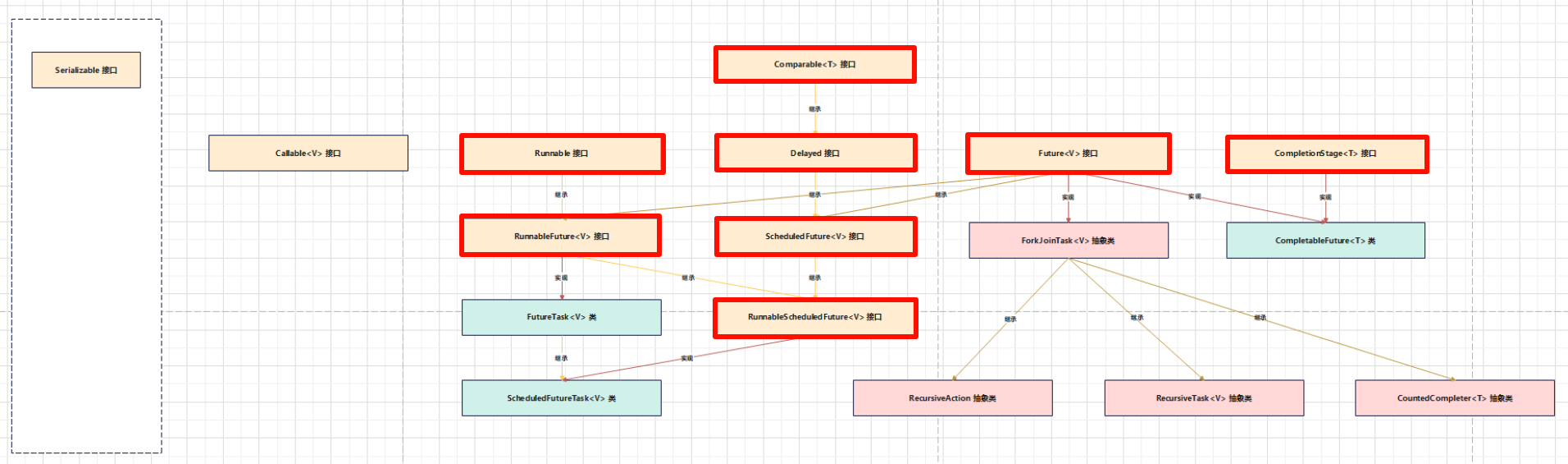如果某实现类实现了 RunnableScheduledFuture<V> 接口,就实现了以下接口: