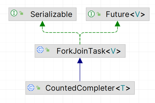 CountedCompleter 是一个抽象类,继承了 java.util.concurrent.ForkJoinTask<V>