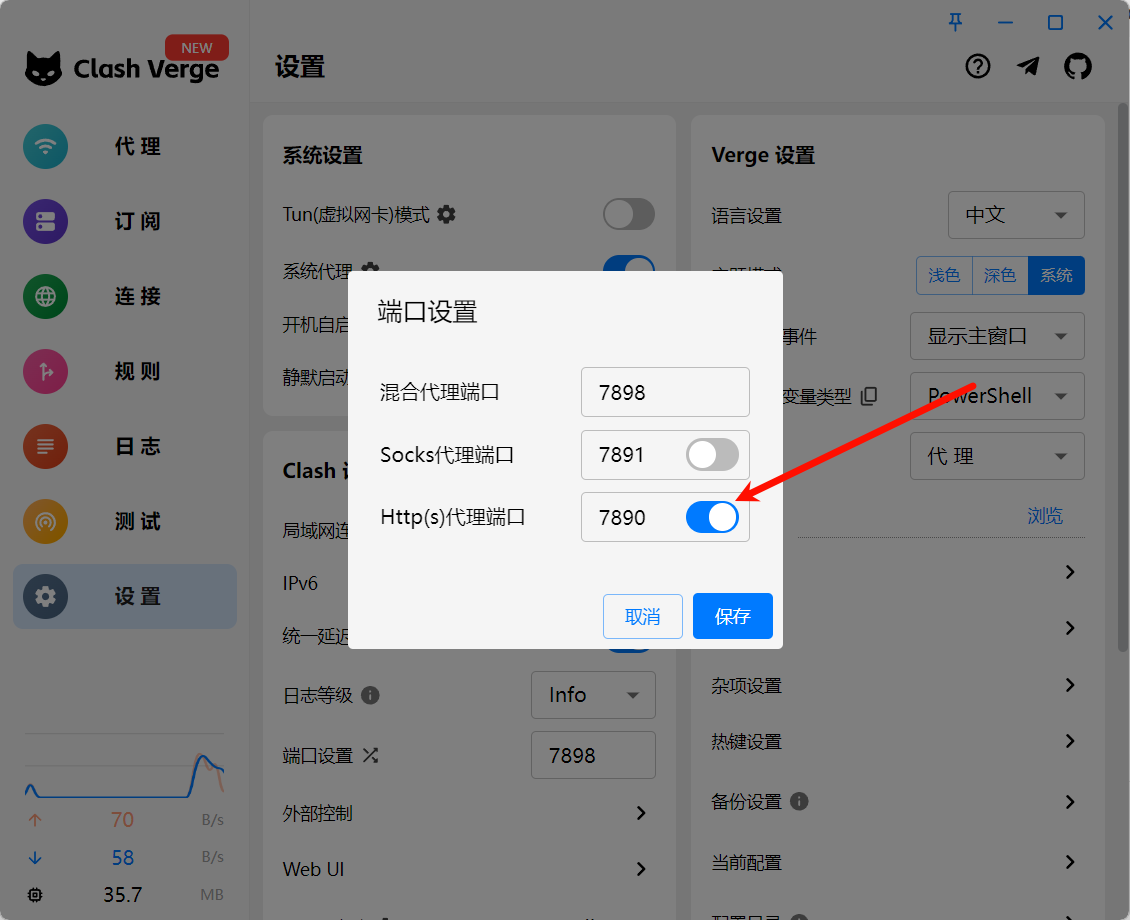 Clash的配置进行调整,填写你实际使用的代理端口。