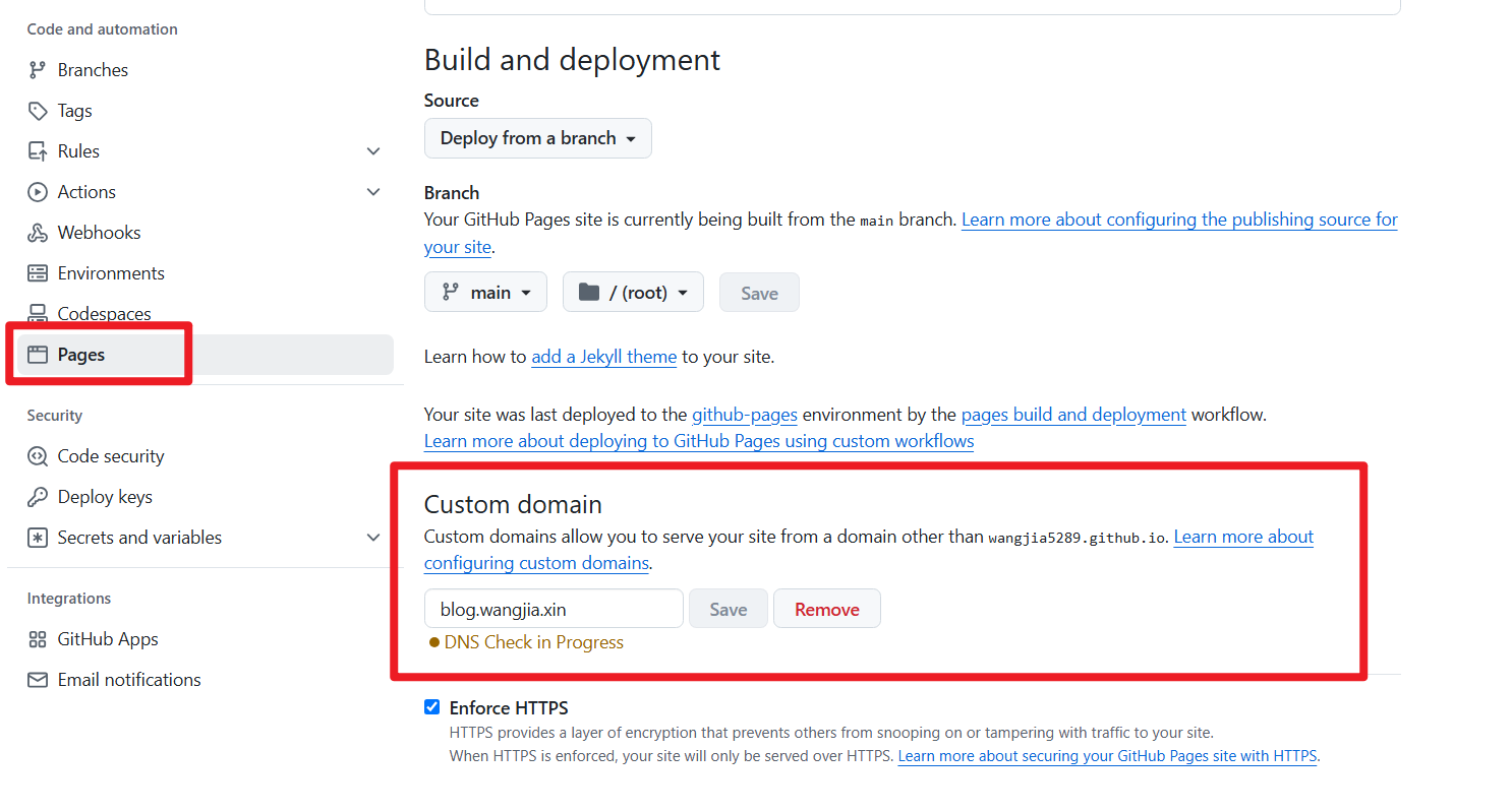 1. 登录 GitHub,在您的 id.github.io 项目中,通过 Settings选项进行域名配置
