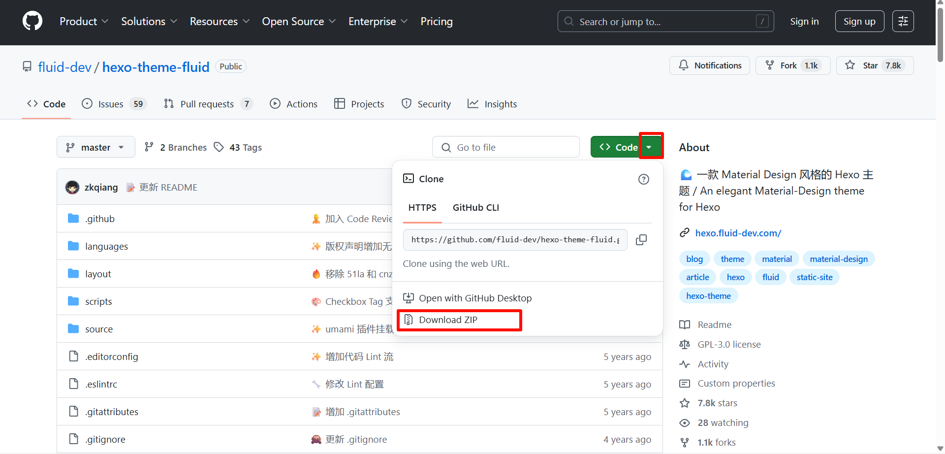 上面展示的 Hexo 默认样式较为简陋,视觉效果不佳。你可以在 Hexo主题库 中挑选一个自己喜欢的主题,这里我选择 Fluid 作为我的主题。