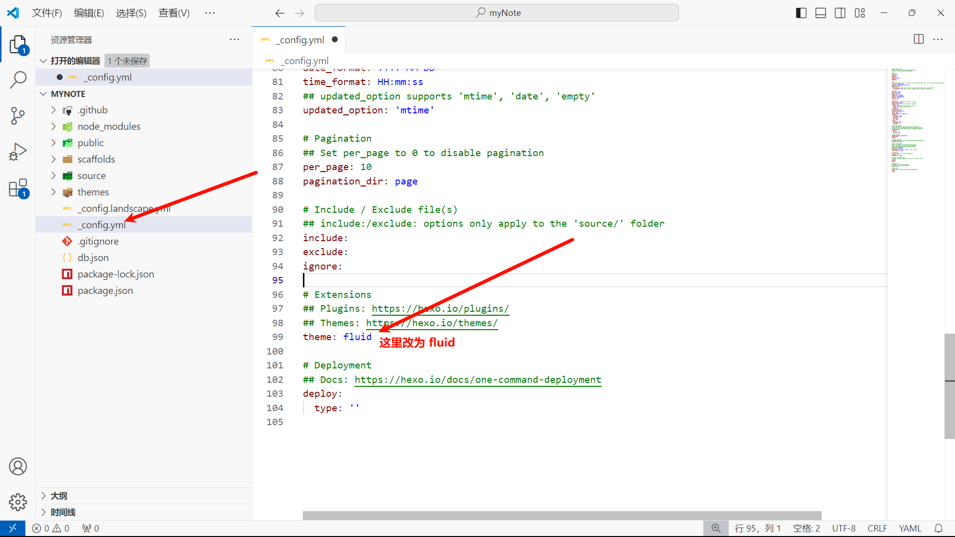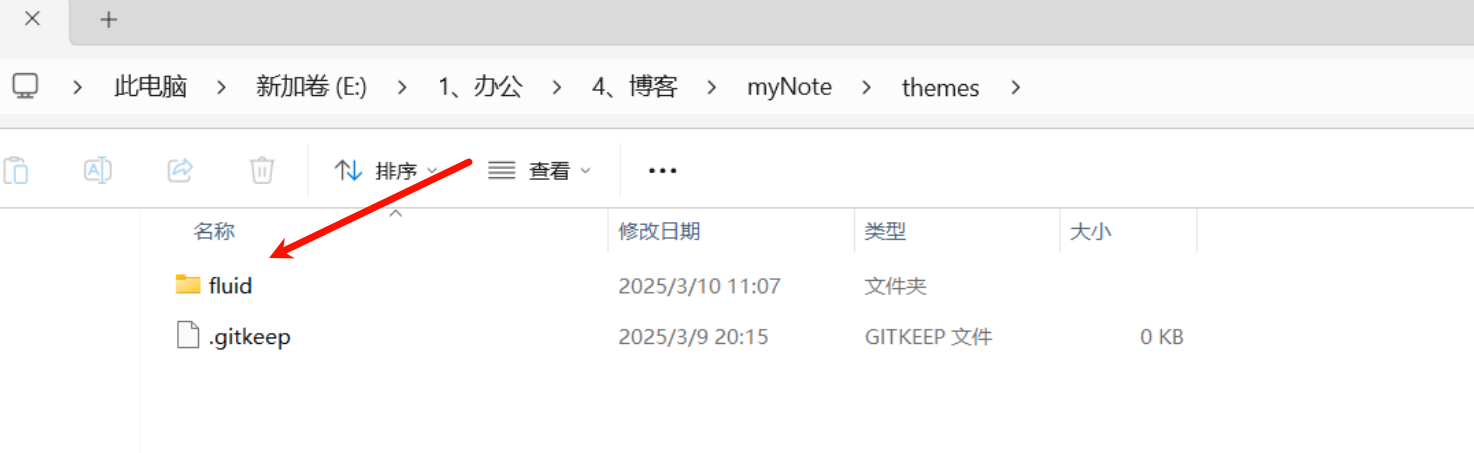 2. 解压缩到 myNote/theme 目录下,并将其重命名为 fluid